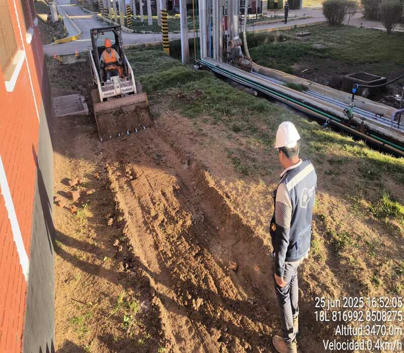 Construcción de cerco perimétrico destinado a garantizar la seguridad y delimitación del área industrial. El proyecto incluye trabajos de movimiento de tierras y la ejecución de vías de acceso para optimizar la operatividad y el control perimetral.